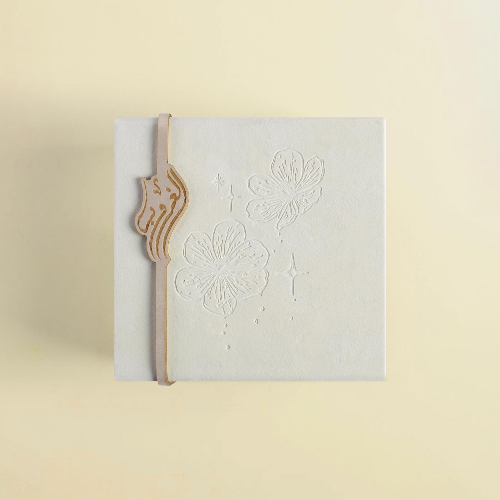 Elegant from the outside with delicate engraving, and refined on the inside with a soft paper finish the perfect blend of sophistication and charm.