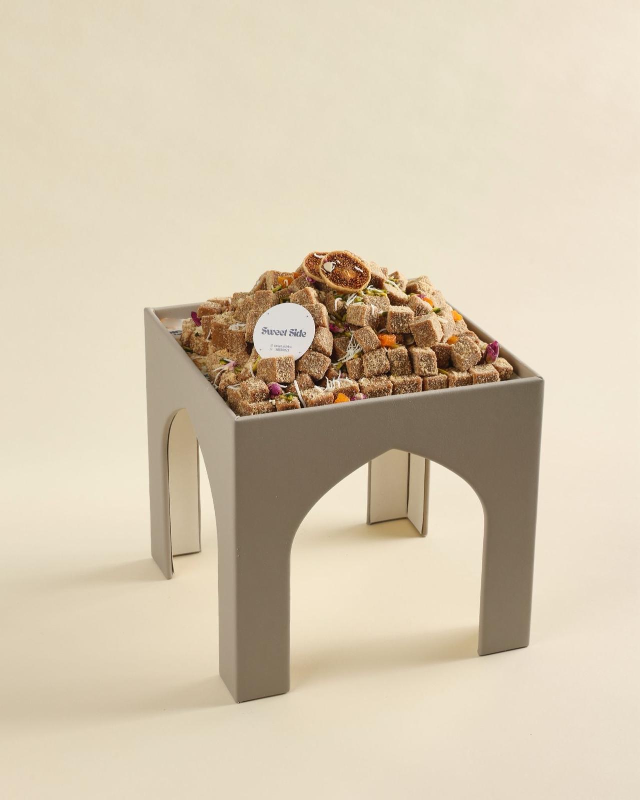 ماعون جلد مصنوع يدويًا مع التمر و غطاء أكريليك، متوفر باللون الرمادي